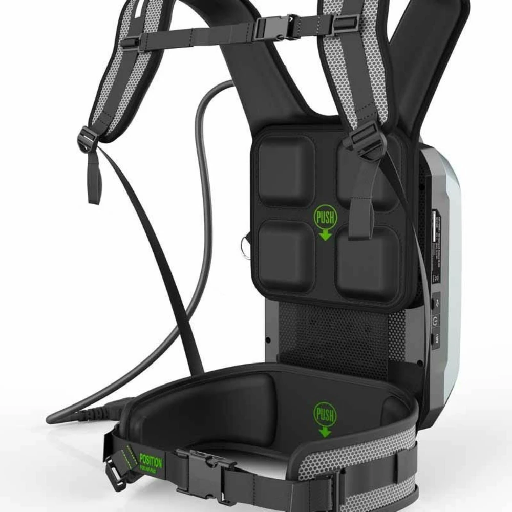 le pack bax 1501 intègre la batterie à dos, le harnais dorsal et son adaptateur, l’ensemble étant garanti 3 ans.