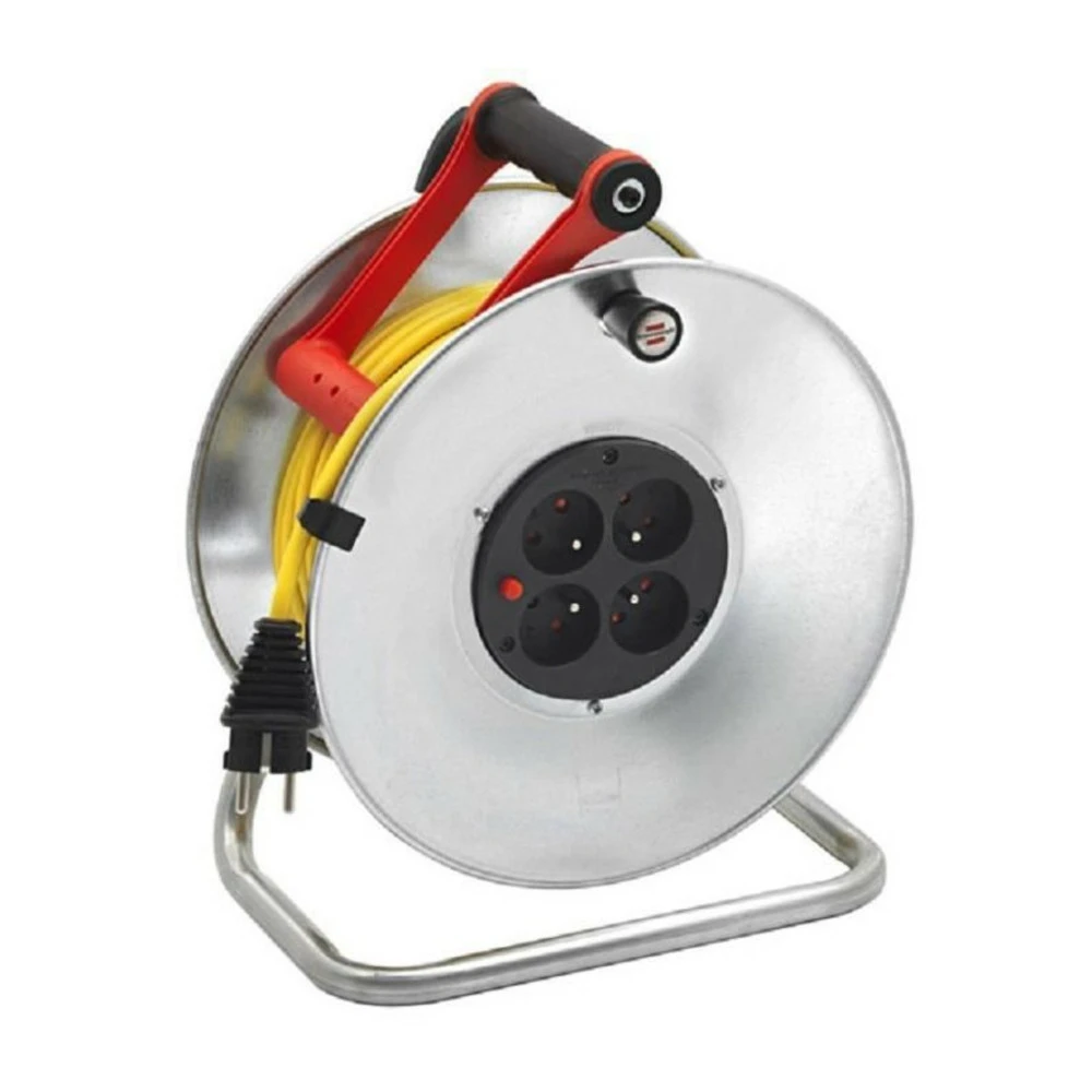 50m de câble jaune h05vv-f 3g1.5 – 1 fiche 2p+t 16a/230v~ – 4 prises 2p+t 16a/230v~ a clapets – disjoncteur thermique – puissance maxi : 3500w câble dĂ©roulĂ© – 1000w câble non dĂ©roulĂ© – protection enfants