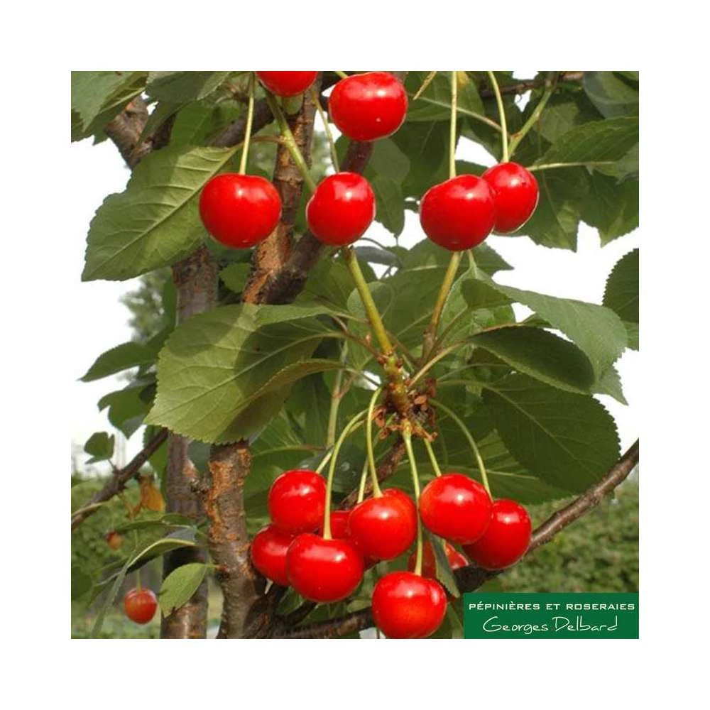 Le cerisier Shangai® produit de belles cerises rouge vif, croquantes et sucrées. L’arbre fruitier colonnaire propose une pousse en une seule tige principale ( le tronc) qui peut atteindre près de 3 mètres de haut. Aucune branche latérale ne s’y développe. Par conséquent, la croissance de l’arbre se fait uniquement à la verticale en gardant son aspect premier, une colonne toute droite. La fructification se fait tout le long du tronc, le long de la colonne.
