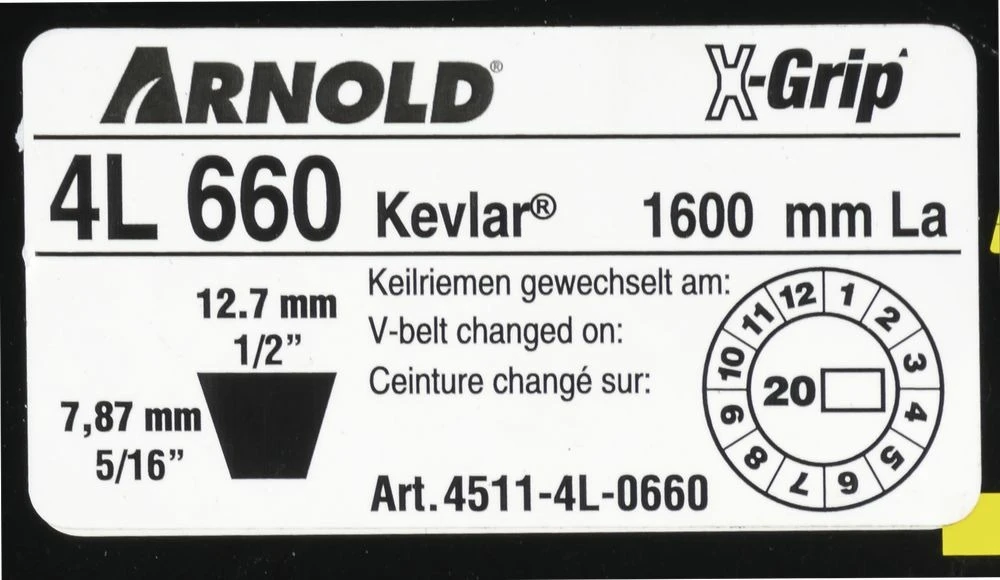 courroie arnold x-grip sont spécialement conçues pour autoportée et tracteur de jardin. Les courroies x-grip ont une haute résistance à l’huile, à la chaleur et aux fissures. Sa composition en fibre et sa couche de kevlar lui confère une grande résistance à la traction, sans torsion, et aux chocs. L’emballage de la courroie donne une haute résistance à l’usure et réduit le glissement à l’embrayage. Les courroies arnold x-grip résiste à un haut niveau de torsion.
