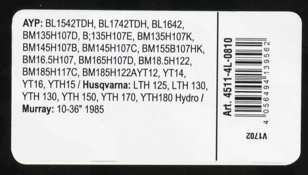 | husqvarna | 532 12 34-61 532 14 02-94 | lth 125, lth 130, yth 130, yth 150, yth 170, yth 180 hydro |