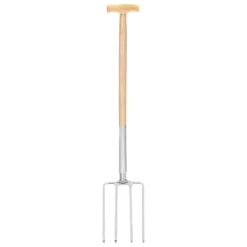 VIDAXL Fourche à Creuser De Jardin Poignée En T Inox Et Bois De Frêne