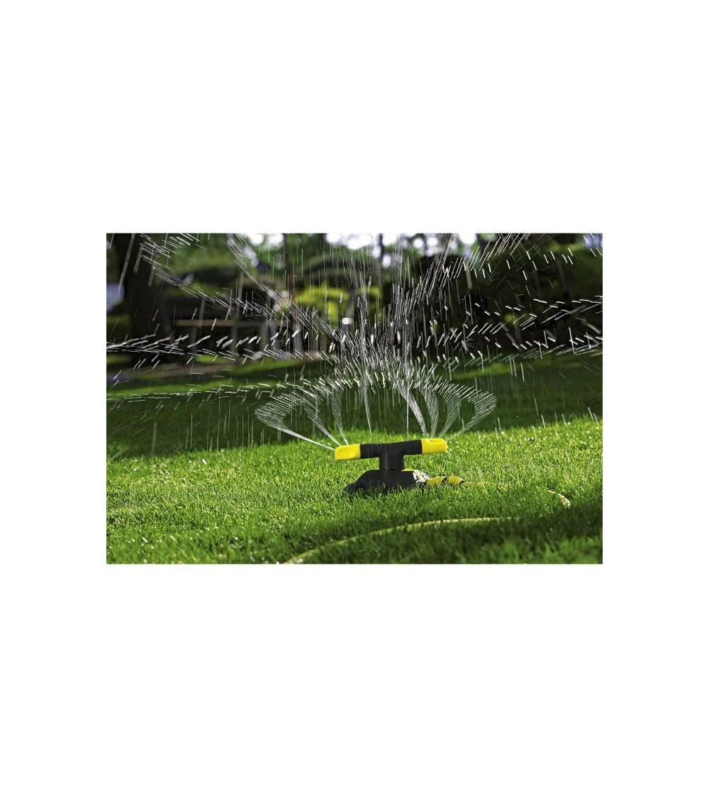 Arroseur rotatif rs 120/2 – bras en métal robustes – angle d’arrosage ajustable – surface d’arrosage maximale atteint 113 m² – systeme clic pour fixation rapide des raccords – base antidérapante – idéal pour les surfaces de tailles moyennes