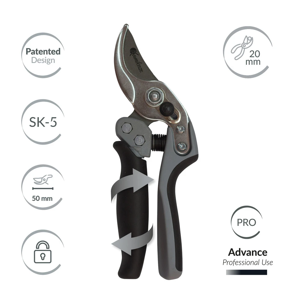 Marque kamikaze : marque espagnole spécialisée dans les outils d’élagage, de récolte et d’agriculture. Créée il y a plus de 20 ans, elle s’est imposée sur le marché grâce à sa large gamme et à son excellent rapport qualité-prix. Chez kamikaze, nous savons que la taille est l’une des fonctions les plus importantes pour le soin des cultures et des plantes, car une taille correcte donne de la force et de la vitalité, ce qui contribue à améliorer la floraison et la production de fruits.