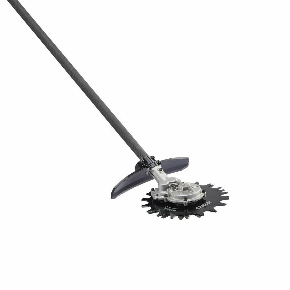 le rotocut assure la continuité d’un travail sans nuisance et se fixe facilement sur le bloc moteur ph1400 du concept multi-outils à batterie de la gamme ego power.