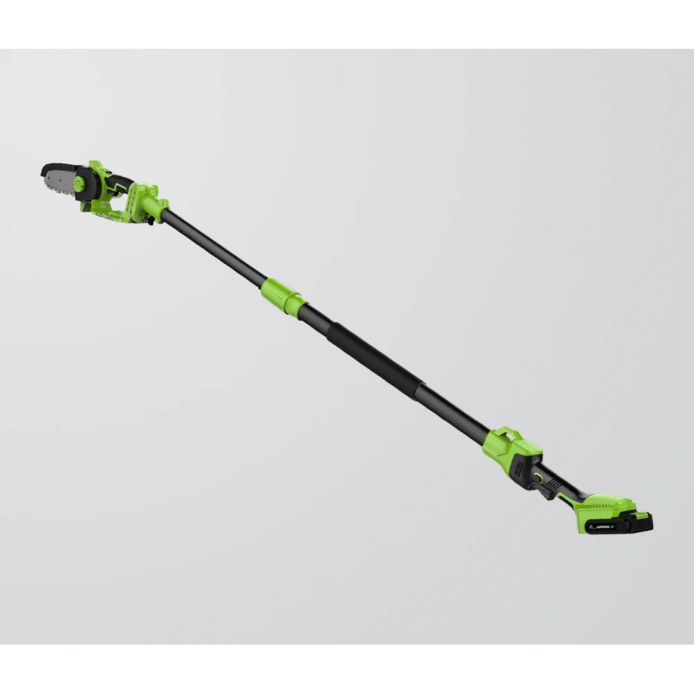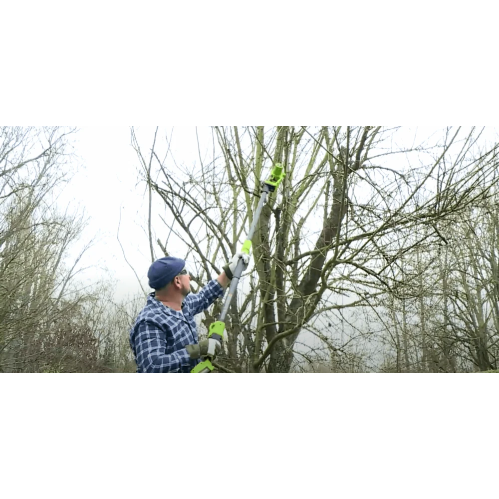 pack : ce pack est composé de la tronçonneuse sans fil électrique avec manche télescopique et un rootslayer à main !