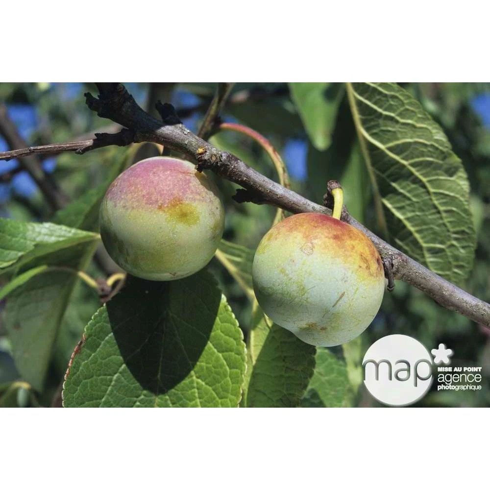 Arbre de vigueur moyenne, à port semi-érigé. Très productif, il a une mise à fruits très rapide et régulière. Cette variété est autofertile. Elle résiste bien aux maladies et demande donc très peu de soins, elle est donc très facile à cultiver pour un amateur. La floraison a lieu mi-mars, cette variété craint énormément le froid, donc il est déconseillé de la planter dans le Nord de la France. En revanche c’est un excellent pollinisateur. La fructification a lieu début à mi-septembre. Les prunes sont de gros calibre, arrondies, de couleur jaune verdâtre. La chair est ferme, juteuse, sucrée et parfumée, au centre se cache un gros noyau.