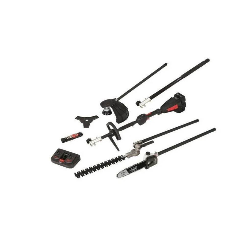 4 en 1 scheppach a batterie. Modele mfh440-40liplus : débroussailleuse, taille-haies, elagueuse, coupe-bordures. Changement facile des accessoires individuels. Mobilité maximale car sans fil. Design ergonomique qui garantit une utilisation confortable. Deux batteries 20v 4ah et un chargeur double inclus.